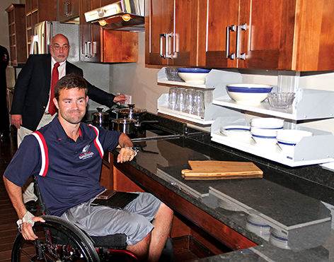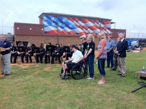 Marine Sergeant Ben Tomlinson, who became a quadriplegic after a mortar attack in Afghanistan, received the iPad that will control his new Smart Home. The home was built right across from Jacksonville High School - Ben's alma mater. The ceremony to dedicate Ben's new home included a performance by the high school band, the landing by three paratroopers on the high school football field and a crowd of friends, family and supporters there to wish him well.